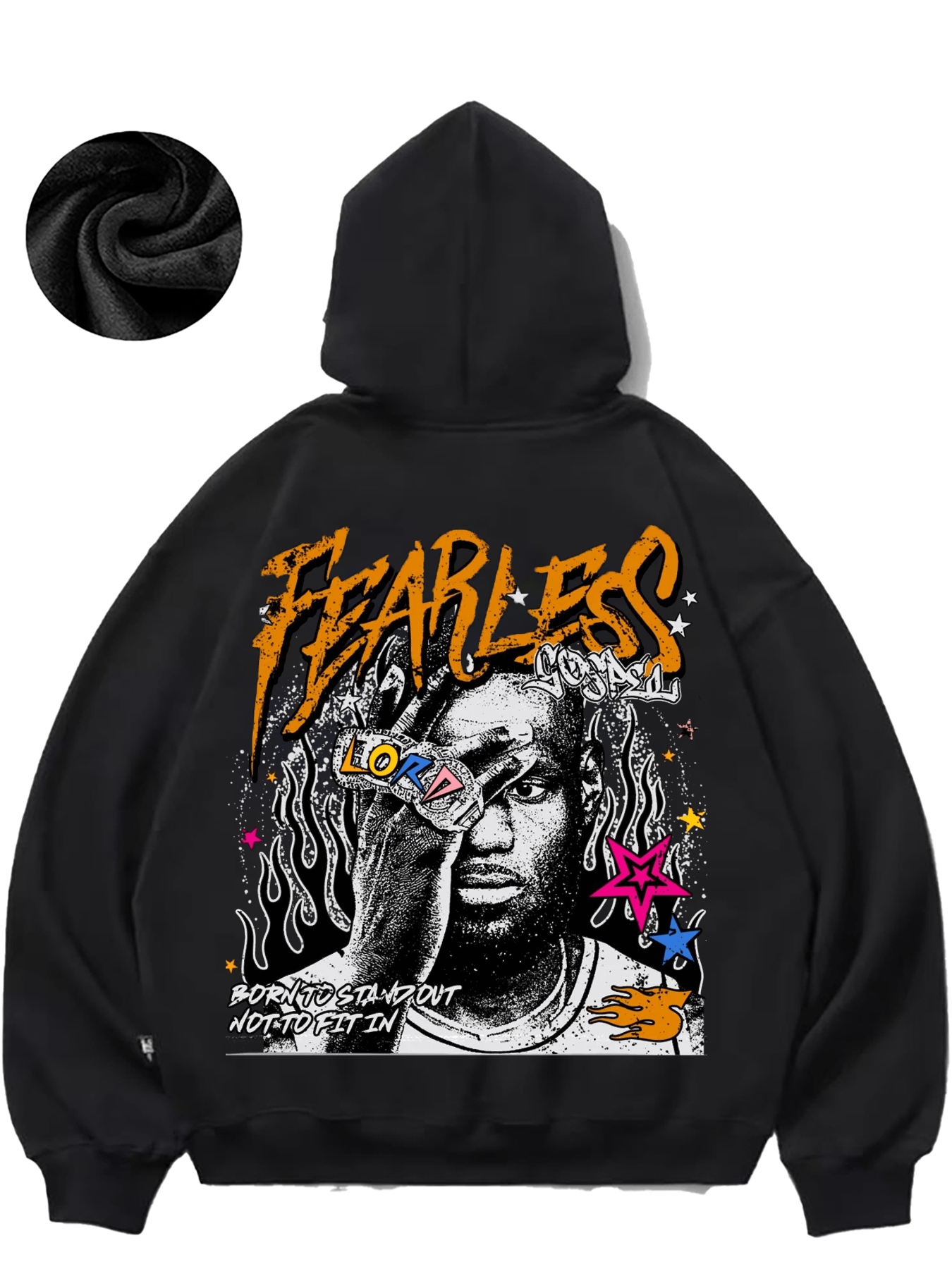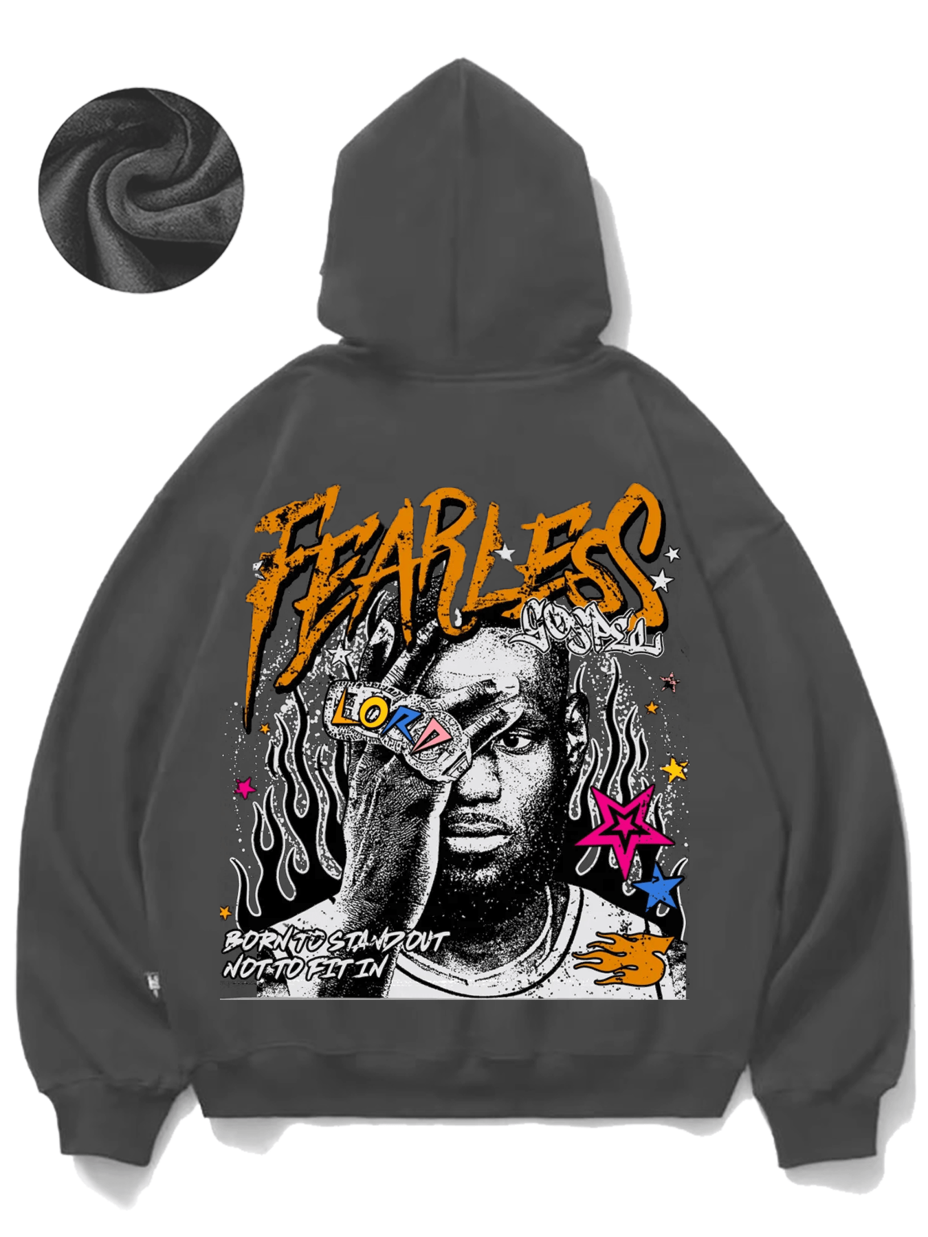- Men's "Fearless" Basketball Star Retro-Printed Hoodie - Cozy Fleece Pullover with Vibrant Geometric Design, Casual Street Style for Fall/Winter Men's "Fearless" Basketball Star Retro-Printed Hoodie - Cozy Fleece Pullover with Vibrant Geometric Design, Casual Street Style for Fall/Winter