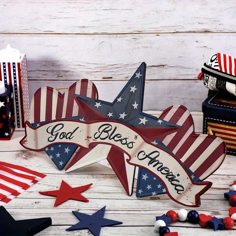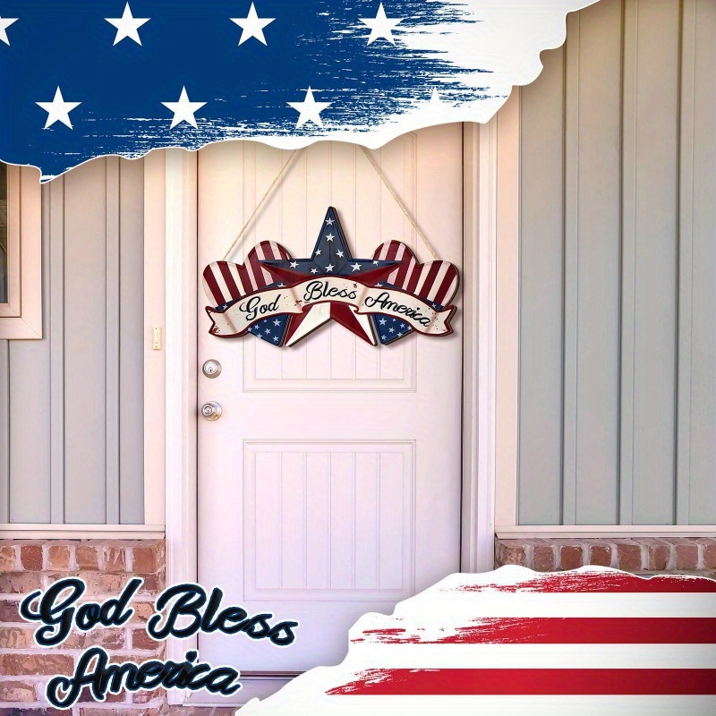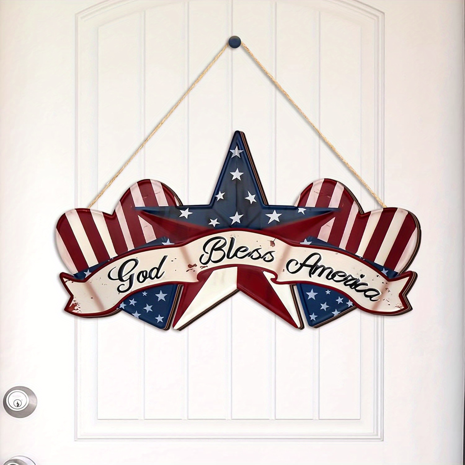 - [Patriotic Wall Hangings] Patriotic 2D Flat Rustic Wooden 'God Bless America' Wall Hangings 11.81x6.49in | 4th of July Star and Heart Pendant with Rope, Farmhouse Style Holiday Decoration for Home Porch or Garden, Memorial Da [Patriotic Wall Hangings] Patriotic 2D Flat Rustic Wooden 'God Bless America' Wall Hangings 11.81x6.49in | 4th of July Star and Heart Pendant with Rope, Farmhouse Style Holiday Decoration for Home Porch or Garden, Memorial Da