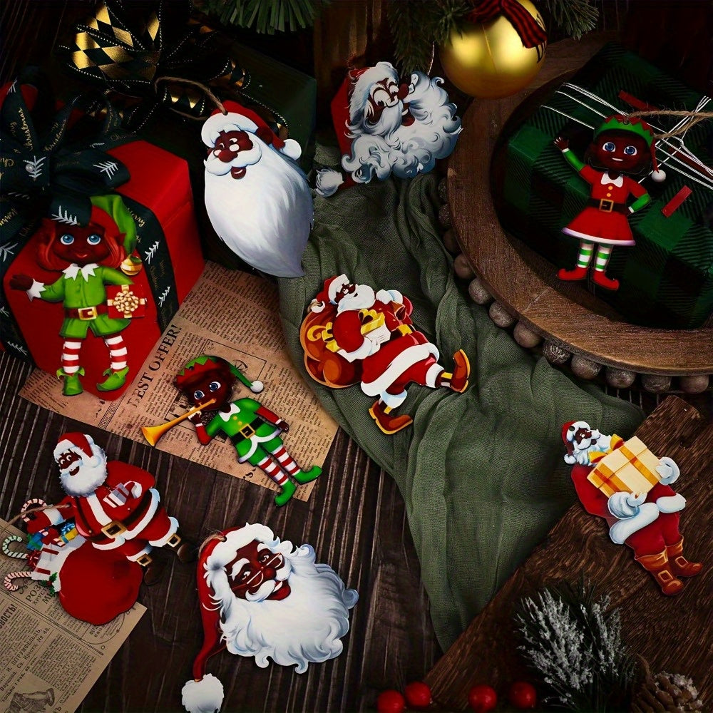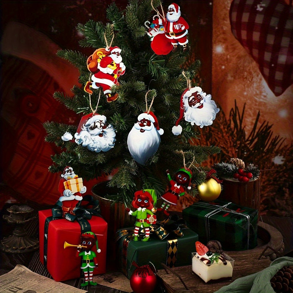 Traditional Wooden Black Santa Claus - Hanging Christmas Tree Decoration for Party - Elf Santa Claus